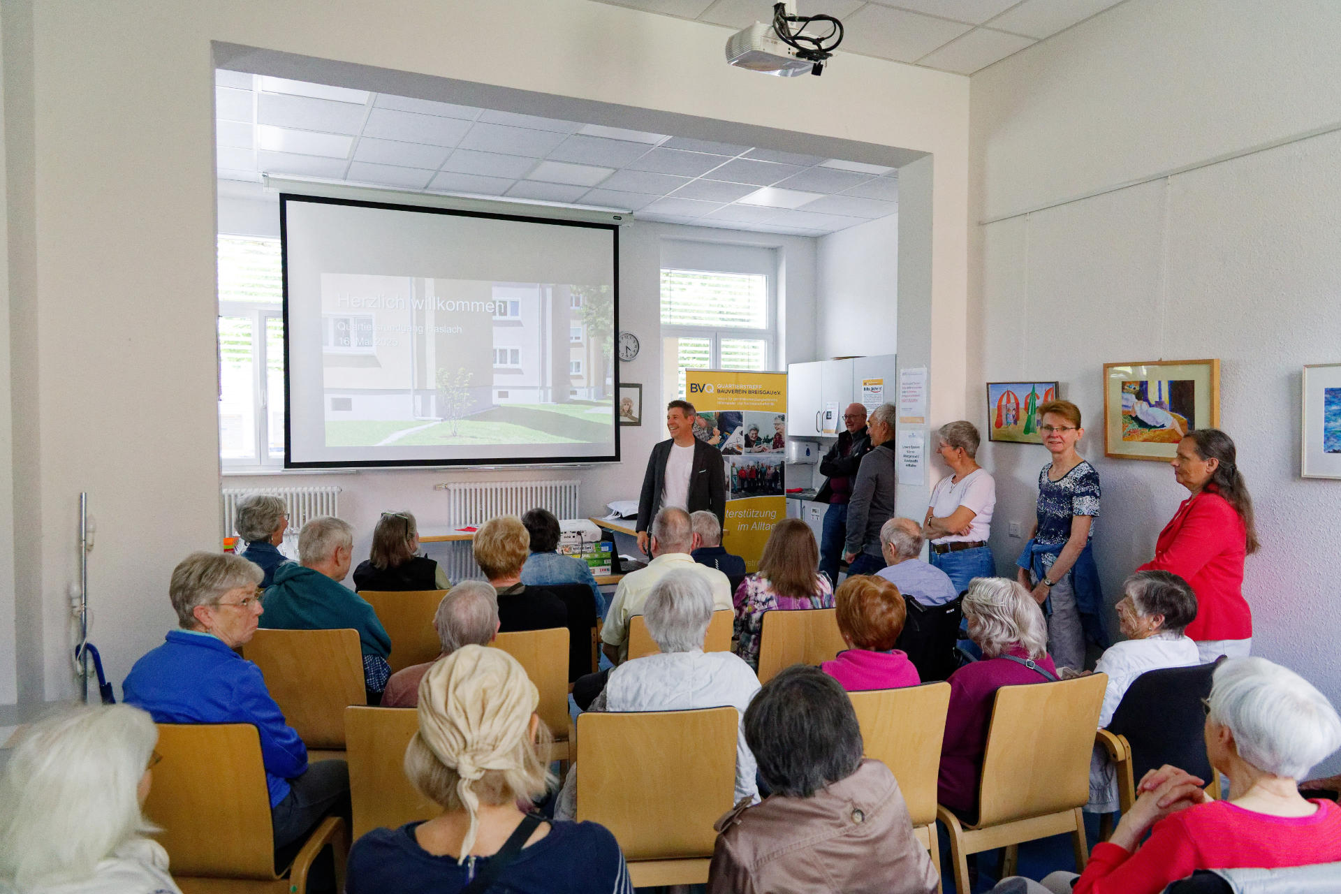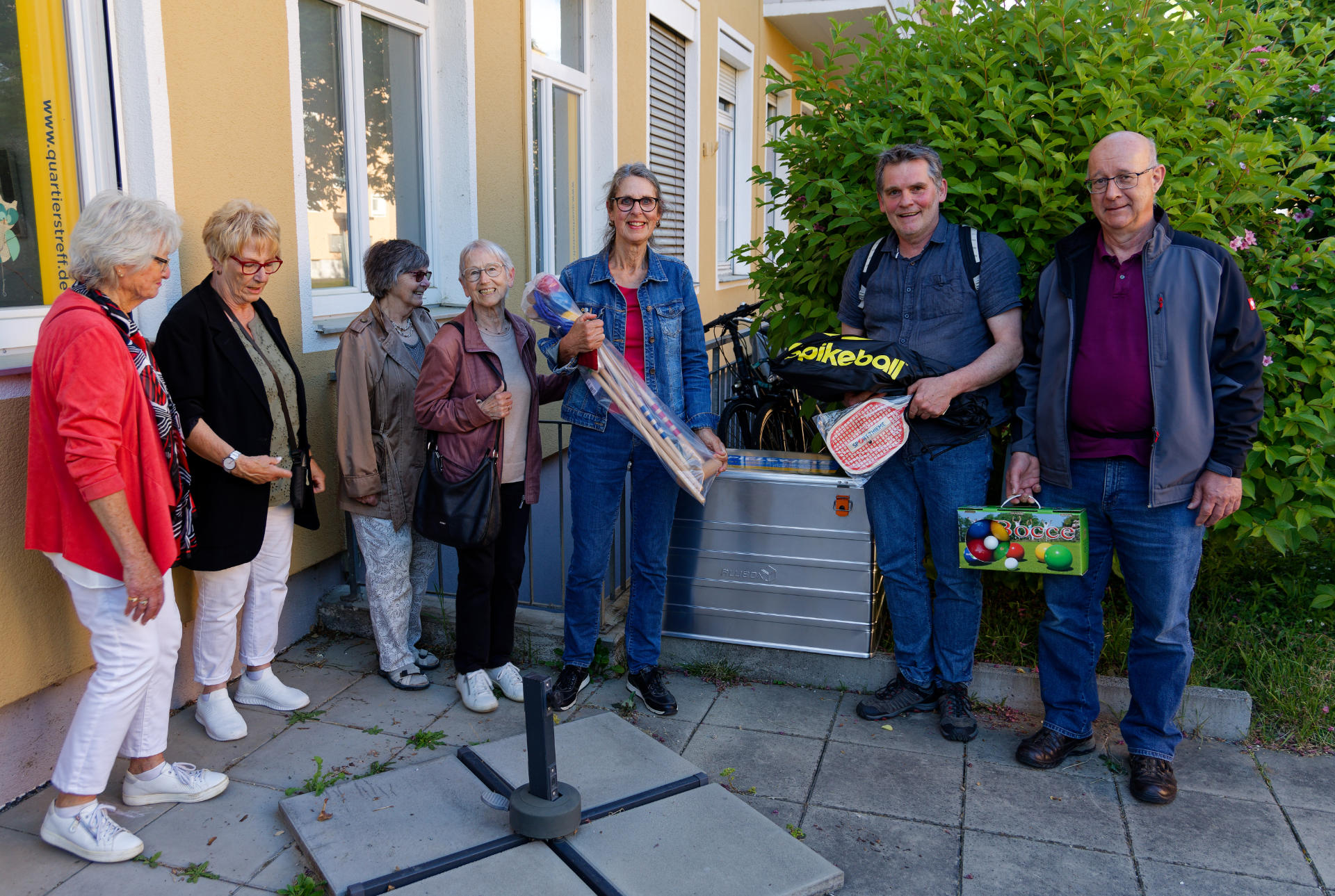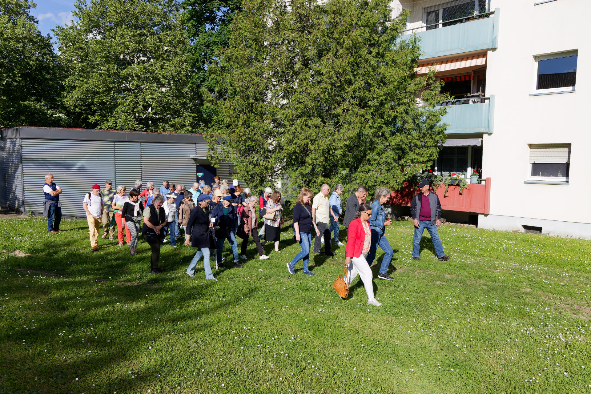 Mitte Mai 2025 lud die Bauverein Breisgau eG zusammen mit dem Quartiersverein zu einem informativen Rundgang um den Quartierstreff am Luckenbachweg ein. Marc Ullrich, Vorstandsvorsitzender der Baugenossenschaft, führte rund 40 Interessierte nach einem Input im Quartierstreffs durch das Quartier. Stationen waren die Seniorenwohnanlage in der Mathias-Blank-Straße und die Energiezentrale. Auch eine frisch sanierte Wohnung der Baugenossenschaft konnte besichtigt werden. Zurück am Quartierstreff wurde eine Spielekiste vorgestellt und der Nachbarschaft zur Nutzung übergeben. Sie enthält Spielmaterial für die spielerisch-sportliche Freizeitgestaltung in den schönen Grünanlagen des Quartiers (mehr Infos zur Spielekiste beim Quartierstreff Luckenbachweg).