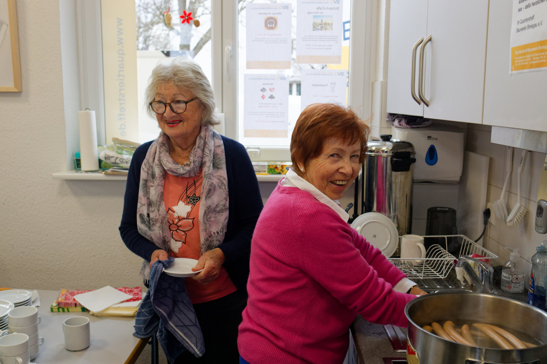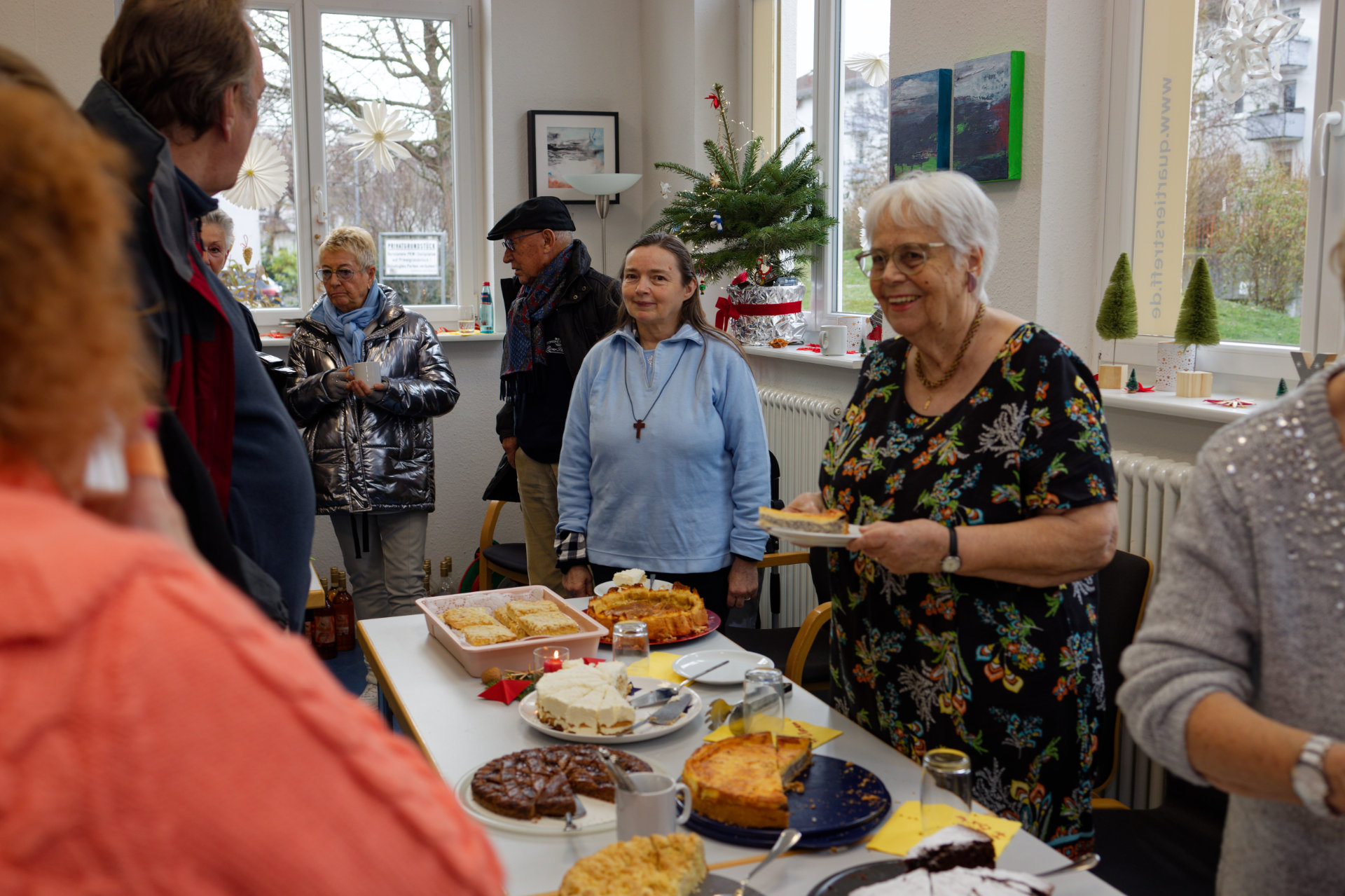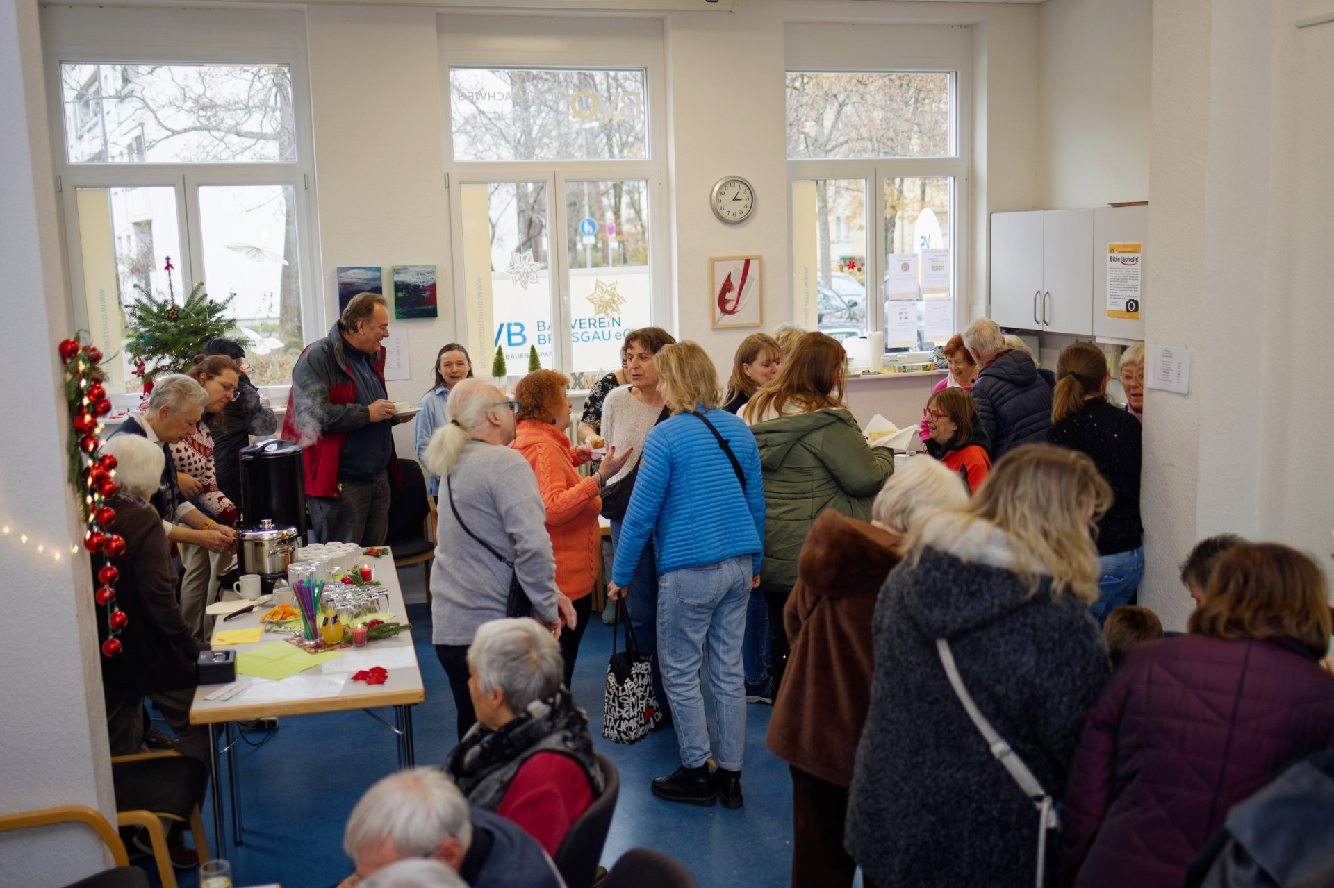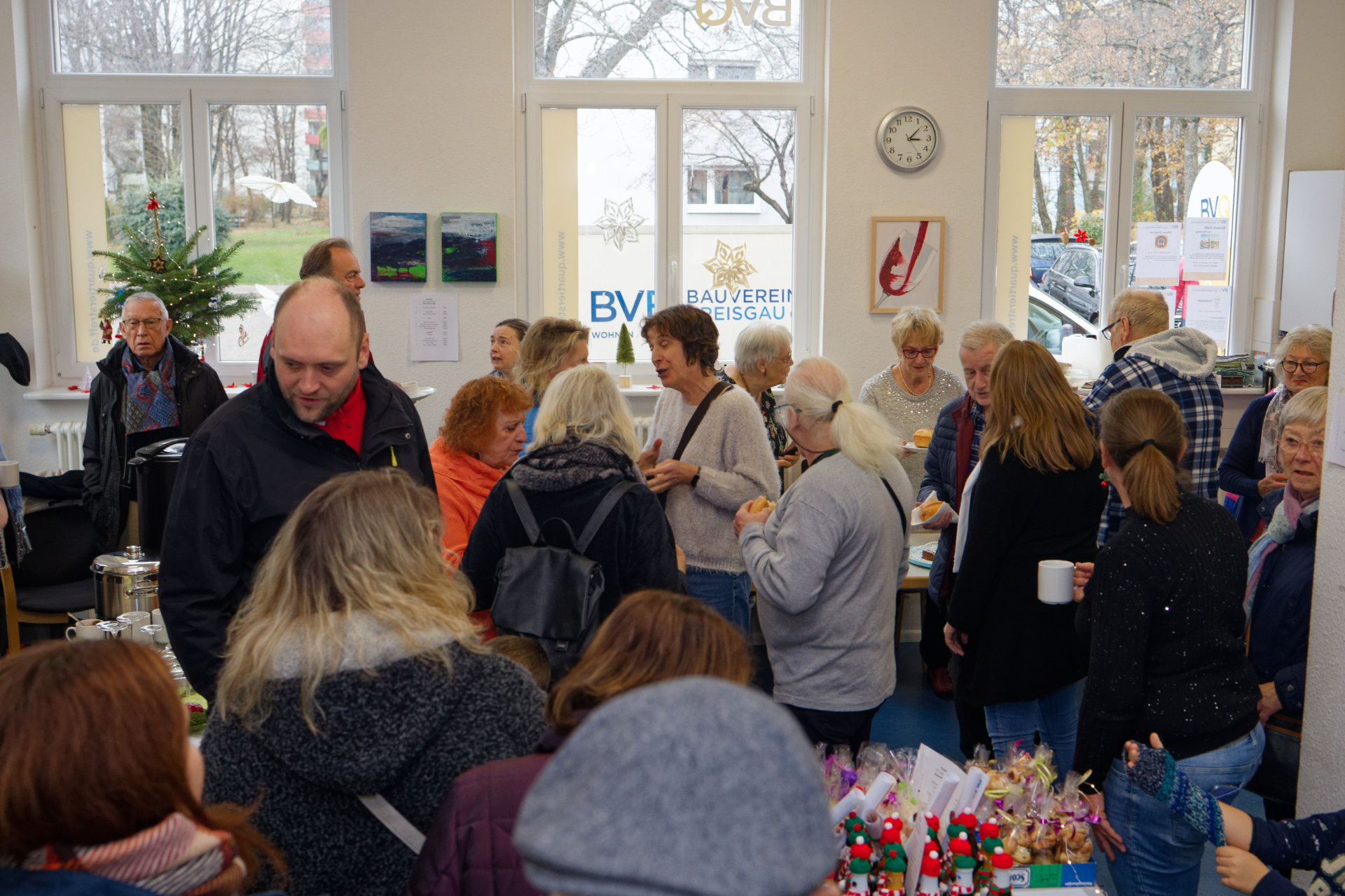 Am Wochenende vor dem 1. Advent platzte der Quartierstreff Luckenbachweg aus allen Nähten: zahlreiche Nachbarinnen und Nachbarn waren gekommen, um in stimmungsvoller Atmosphäre einen fröhlichen Nachmittag miteinander zu verbringen. Hier gab es Gelegenheit kleine Geschenke zu kaufen und auch leckerer Kuchen, knackige Wienerle und heiße Getränke waren gut nachgefragt. Wem es innen zu voll war, der konnte Punsch oder Wurst auch auf der Terrasse genießen und sich an der Feuerschale aufwärmen. (Fotos: Stephan Seyl)