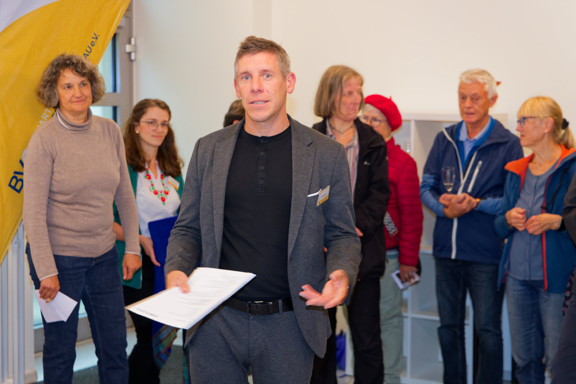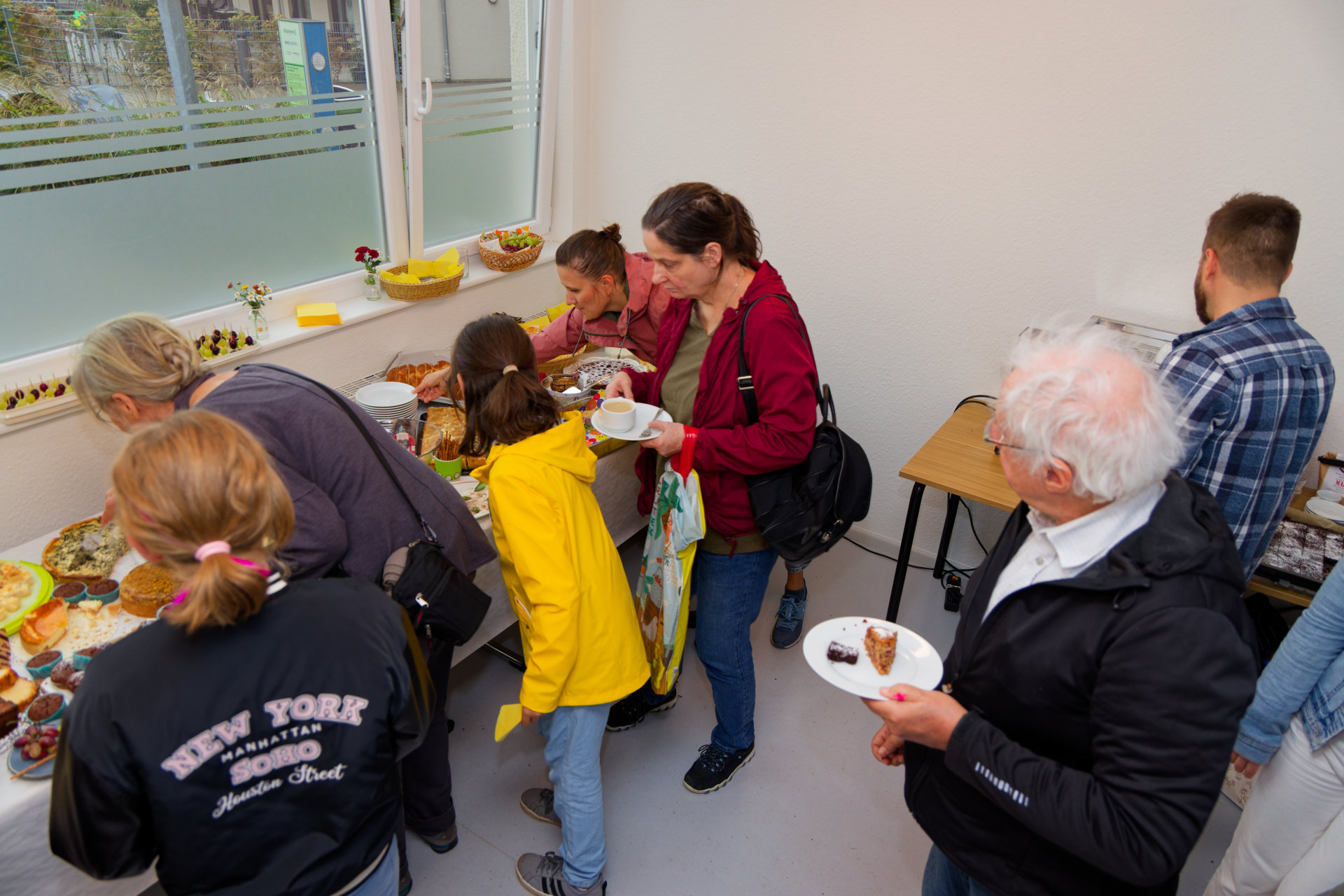 Zahlreiche Bewohnerinnen und Bewohner des Uni-Carré feierten zusammen mit Vertreterinnen und Vertretern der Bauverein Breisgau eG und des Quartiersvereins die neuen Räume. Marc Ullrich, Vorstandsvorsitzender der Baugenossenschaft und Vorsitzender des Quartiersvereins übergab in einer feierlichen Zeremonie zusammen mit Quartiersvertreterin Doris Banzhaf symbolisch die Räume für die nachbarschaftliche Begegnung an die Menschen im Uni-Carré. (Fotos: Stephan Seyl)