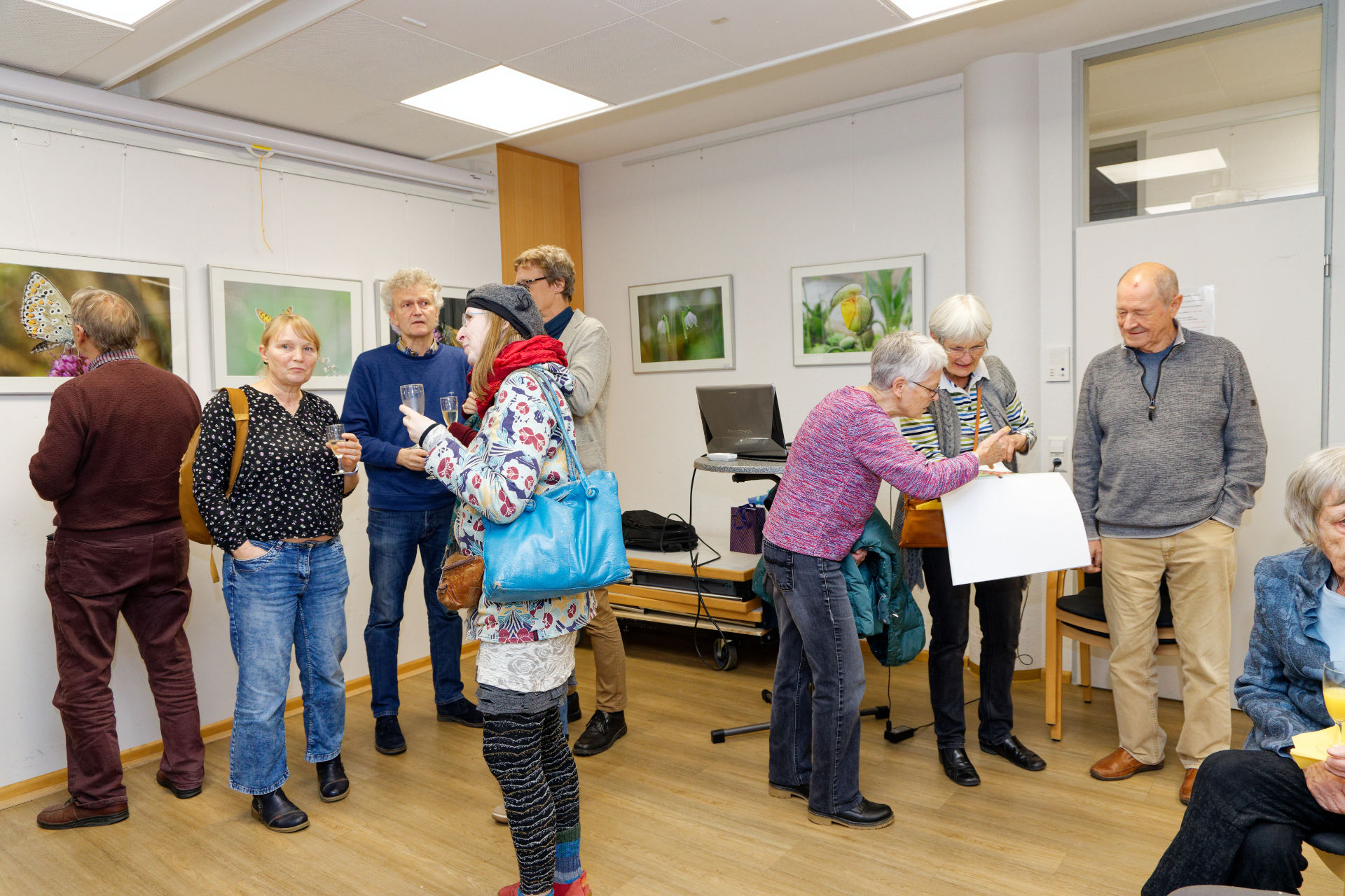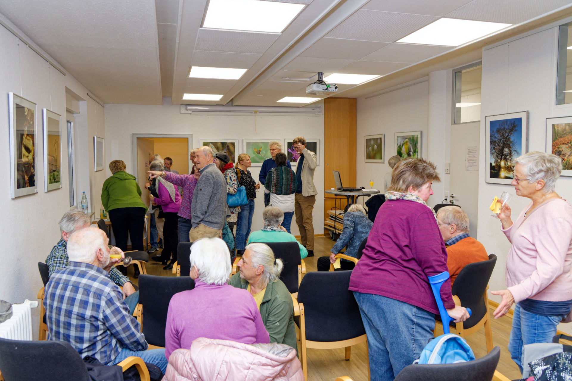 Rund 45 Besucher kamen im November 2024 zur Eröffnung der Jubiläumsausstellung der Fotogruppe in den Quartierstreff Qu33. Die Gruppe um Petra Lenz und Frowalt Janzer präsentierte im Vortrag die Lieblingsbilder aus den zurückliegenden 10 Jahren. Die Ausstellung ist noch bis April 2025 zu besichtigen (anlässlich Sprechzeiten und auf Anfrage).
