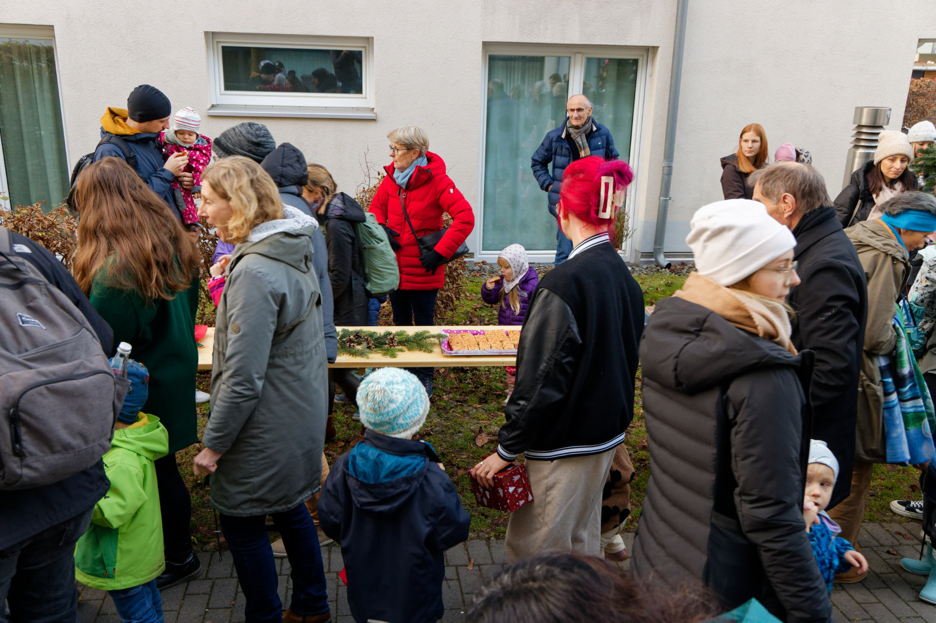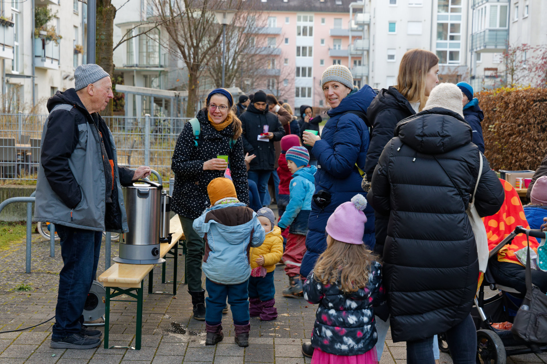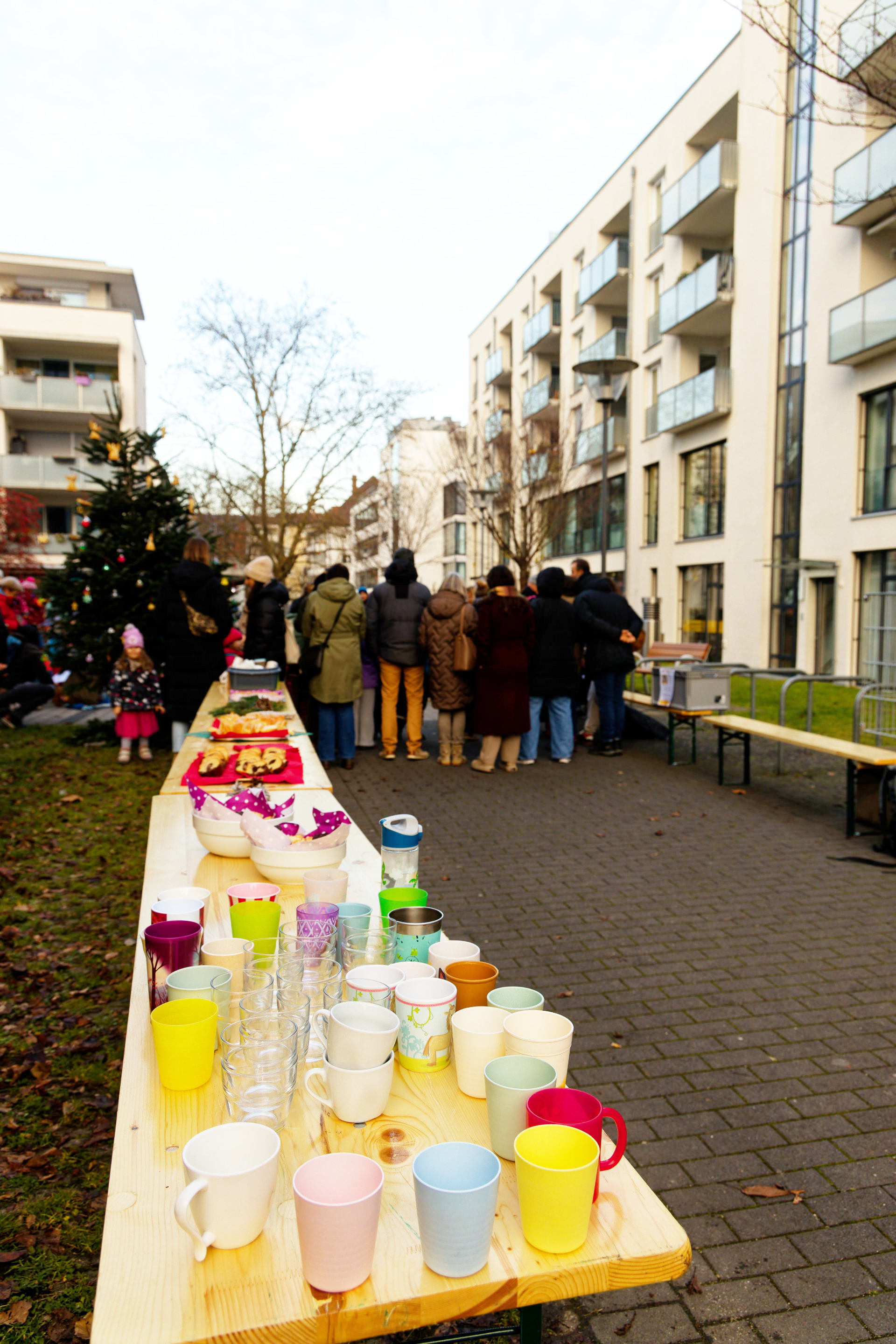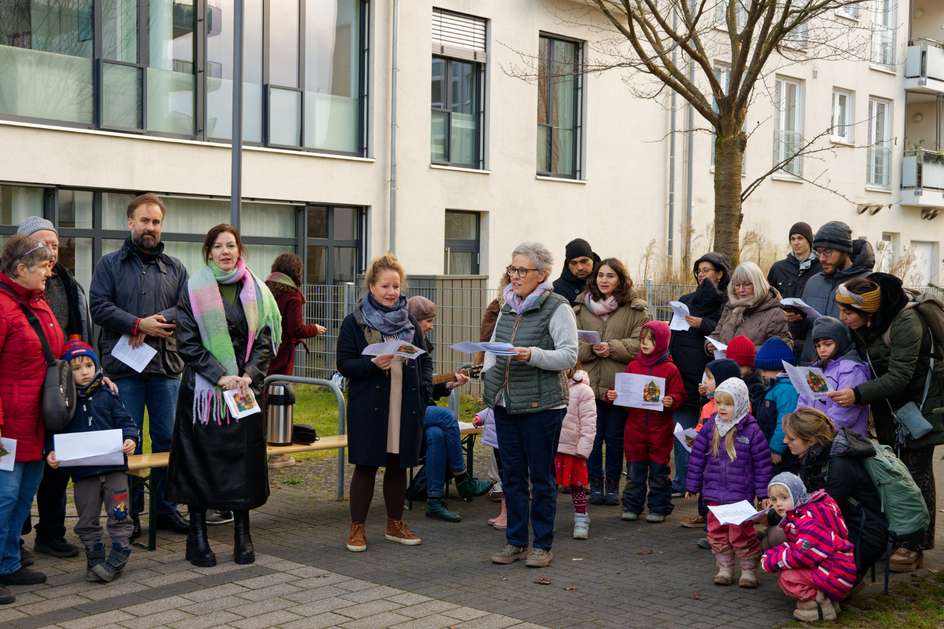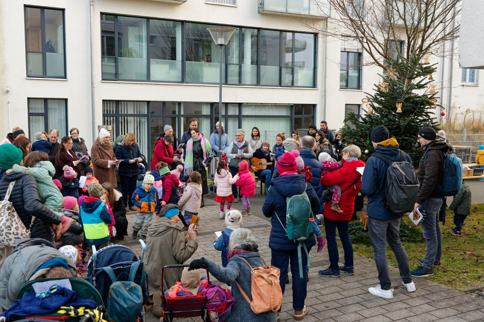 Anfang Dezember fand im Innenhof des Quartiers wieder eine gemeinsame Aktion der Junikäfer-Kitas und des Quartierstreffs Qu46 statt: Die Kita-Kinder hatten den zuvor aufgestellten Weihnachtsbaum geschmückt. Nachmittags tragen sich Nachbarn, Kita-Kindern und ihre Eltern zum gemeinsamen Singen von Weihnachtsliedern. Bei Punsch und Weihnachtsgebäck konnten sich die Teilnehmenden stärken und die vorweihnachtliche Stimmung genießen.